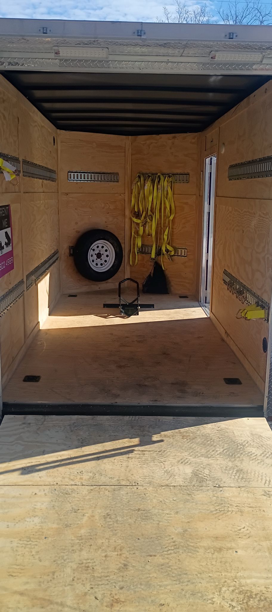 This 12' V-Nose cargo trailer is built for smooth, secure hauling: perfect for moves, equipment, or day-to-day transport across Westmoreland County. With a full ramp door, interior load lighting, spare tire, floor tie down points, and an E-Trac system complete with straps and hooks, it takes the stress out of loading and securing your gear. Whether you're moving furniture, hauling supplies, moving a motorcycle, or transporting tools, this trailer gives you space, stability, and reliability without the bulk of a larger unit.